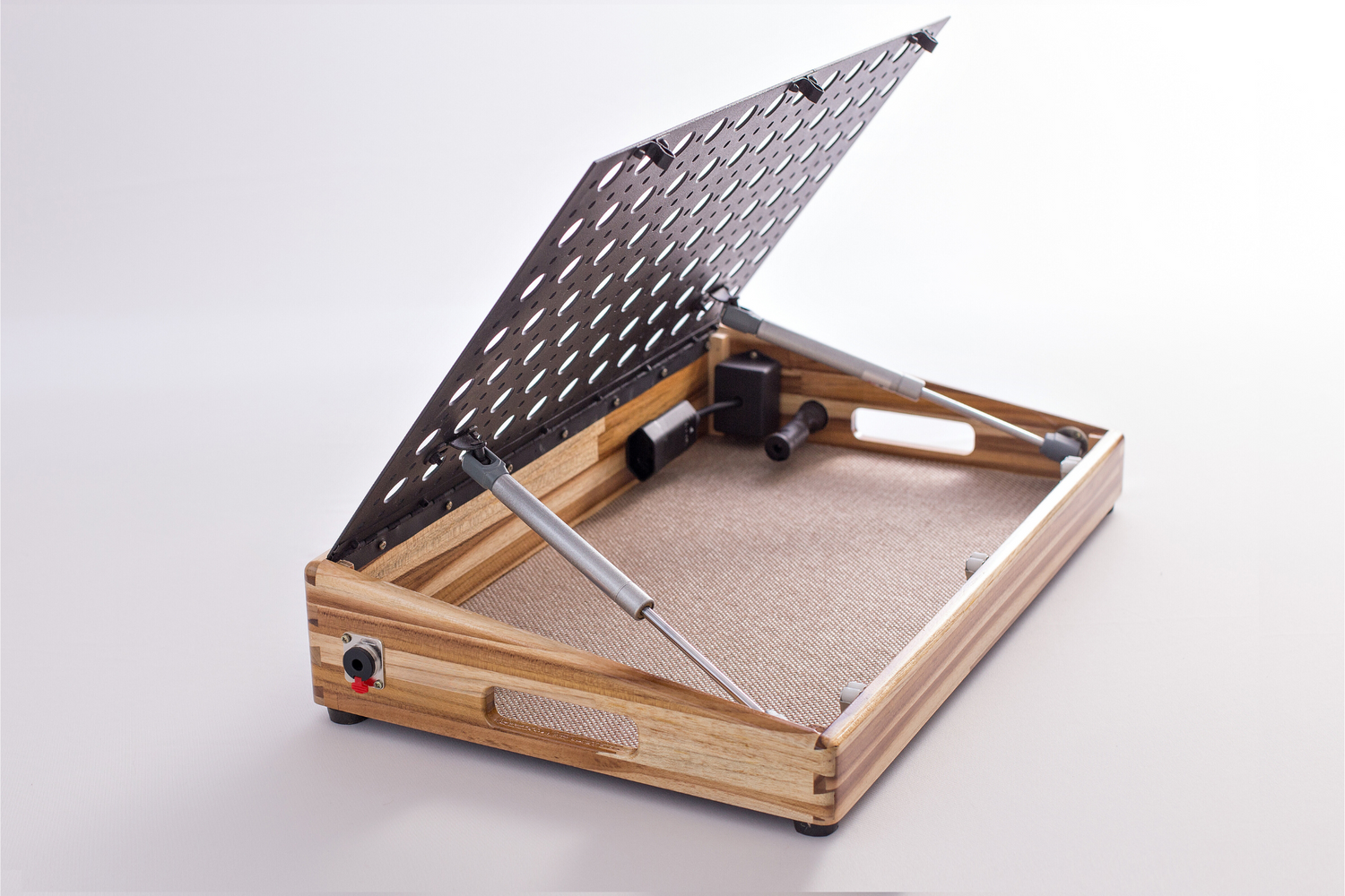 "Elevate your musical experience with ease and precision. Our aluminum platform harnesses high-quality gas pistons to deliver a smooth and controlled lift, ensuring you can focus solely on your music."